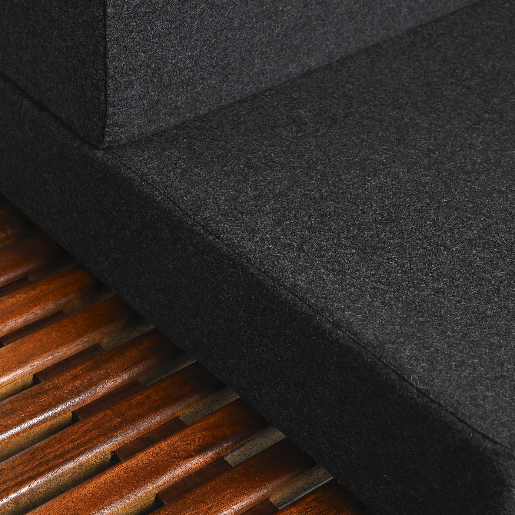 Les coussins sont couverts d'un drap de laine Anthracite par Nobilis. Sur devis, d'autres tissus sont possibles.
