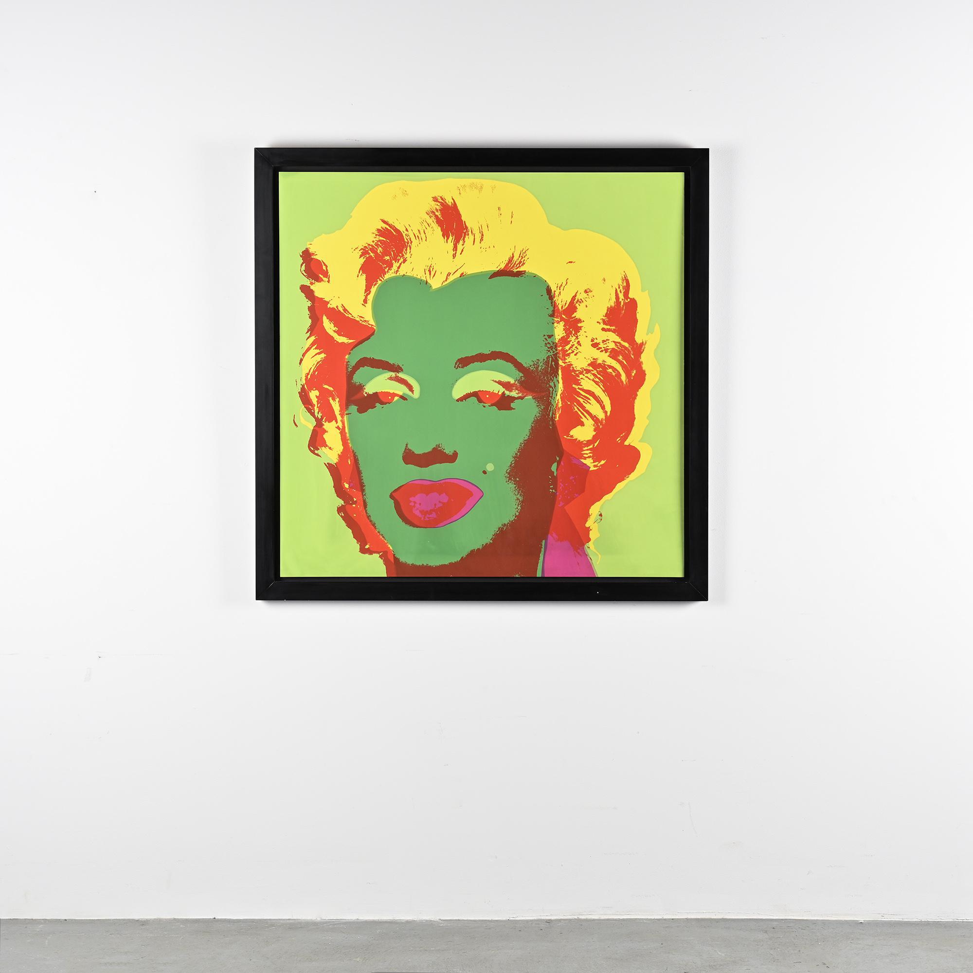 Screenprint depicting the iconic portrait of Marilyn Monroe, produced after Andy Warhol's original work and representative of his exploration of celebrity imagery in the late 1960s and early 1970s.