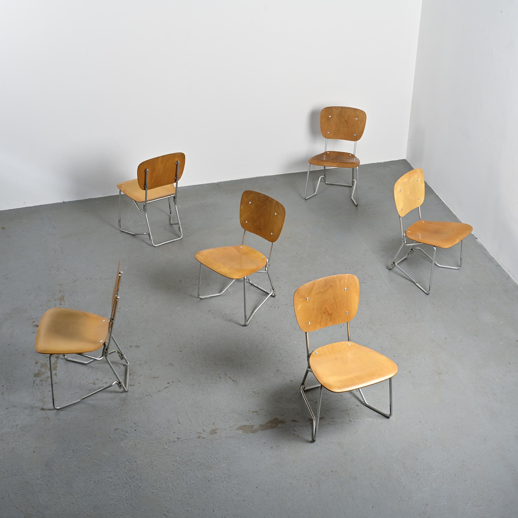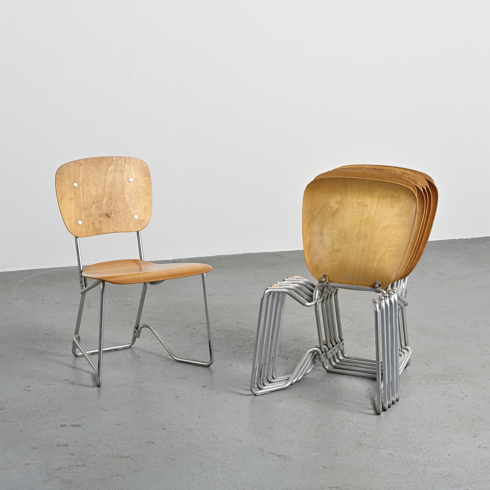 Set of six chairs called "Alu-Flex" by the Swiss designer Armin Wirth.