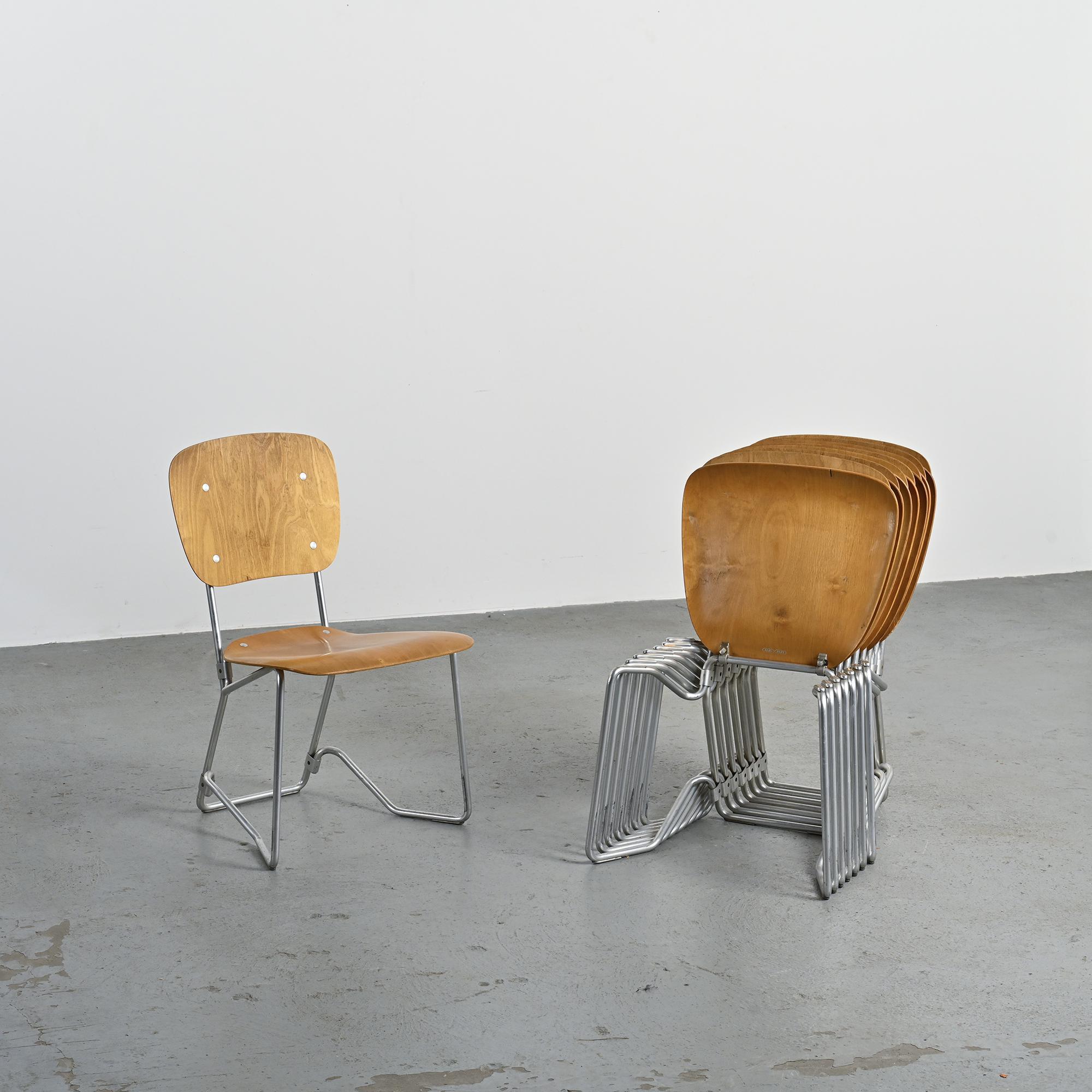 Large set of eight "Alu-Flex" chairs designed by Swiss designer Armin Wirth.