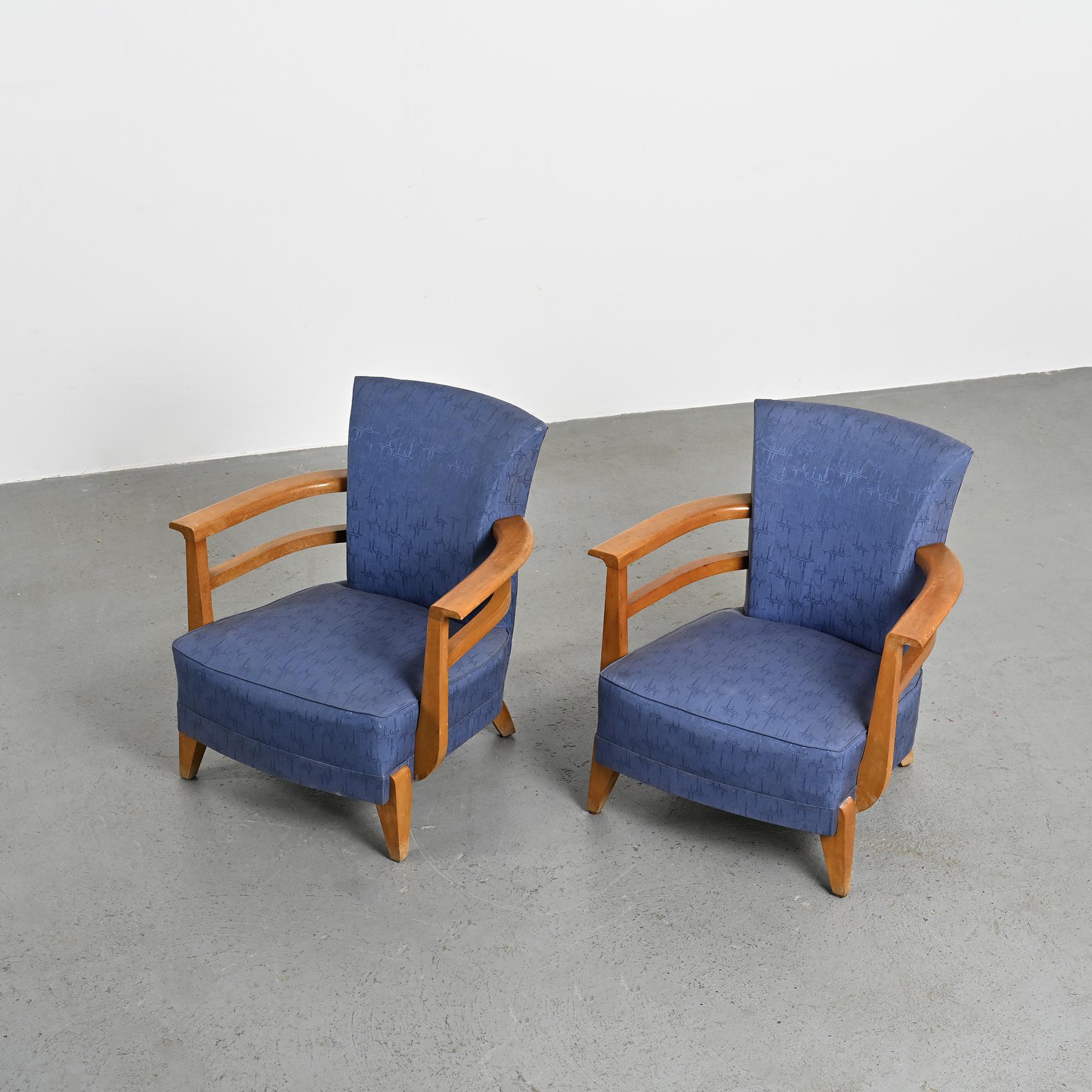 Pair of solid beech armchairs, France, circa 1950