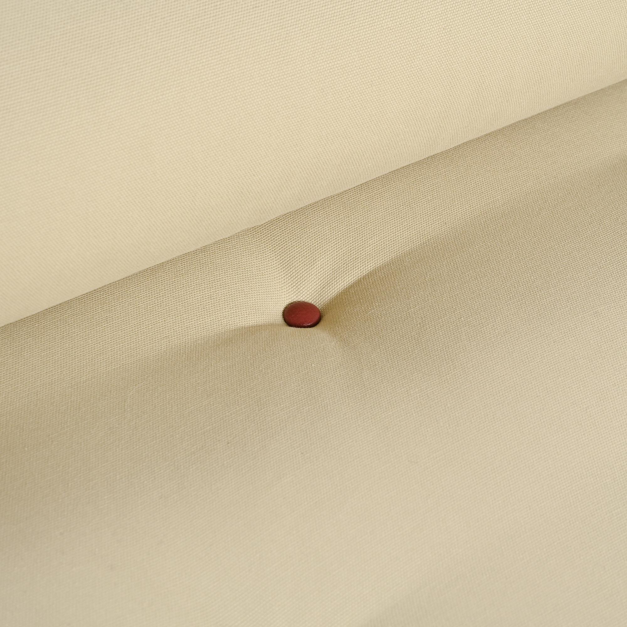 Black lacquered metal, cream-colored cotton fabric, reversible with a burgundy detail. It is also available with a black mattress.
