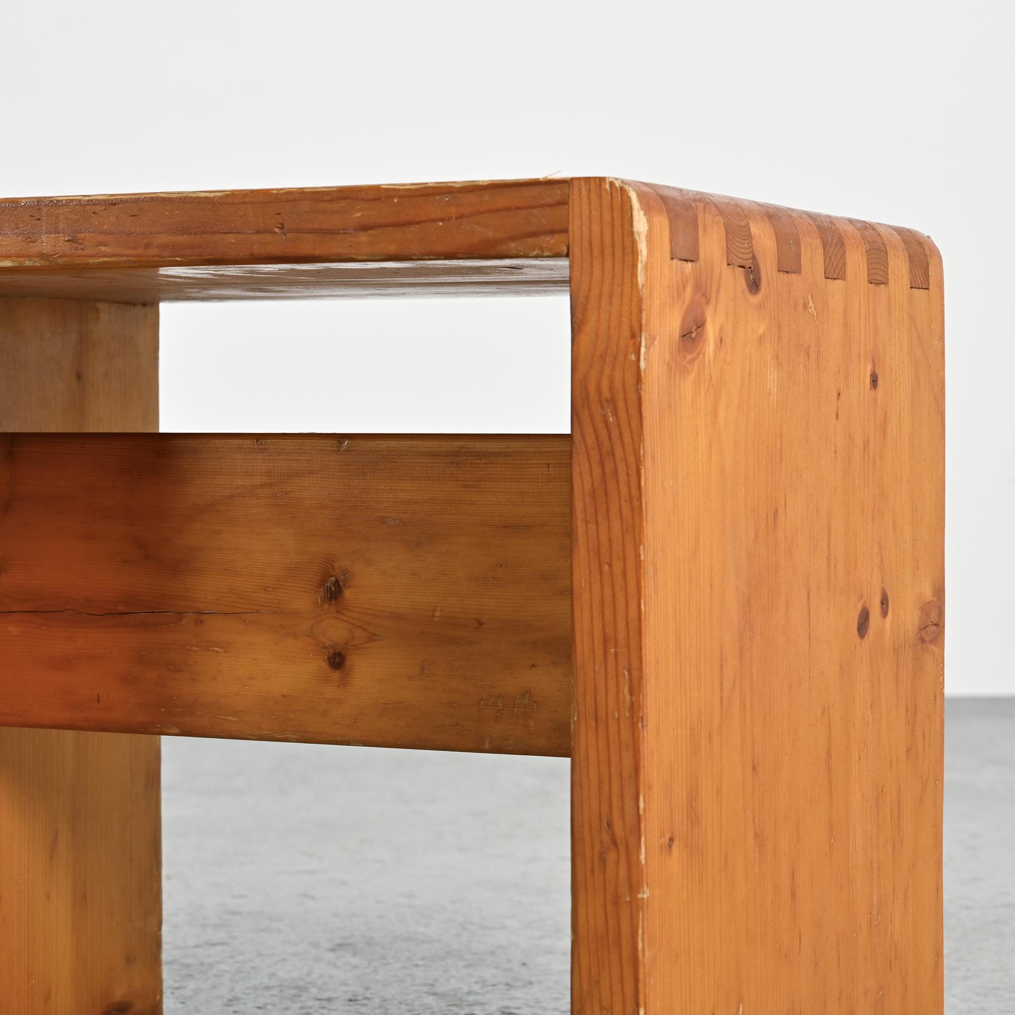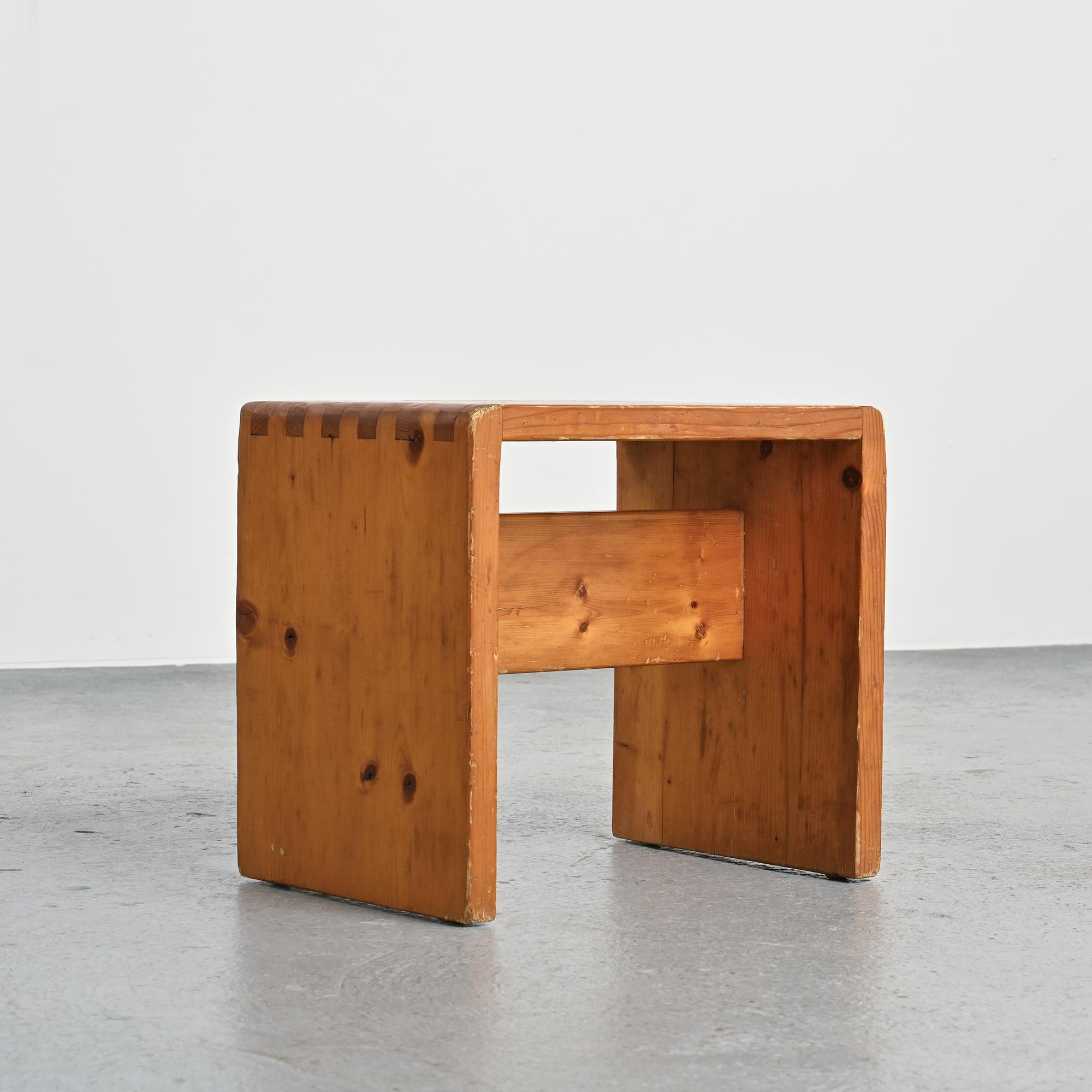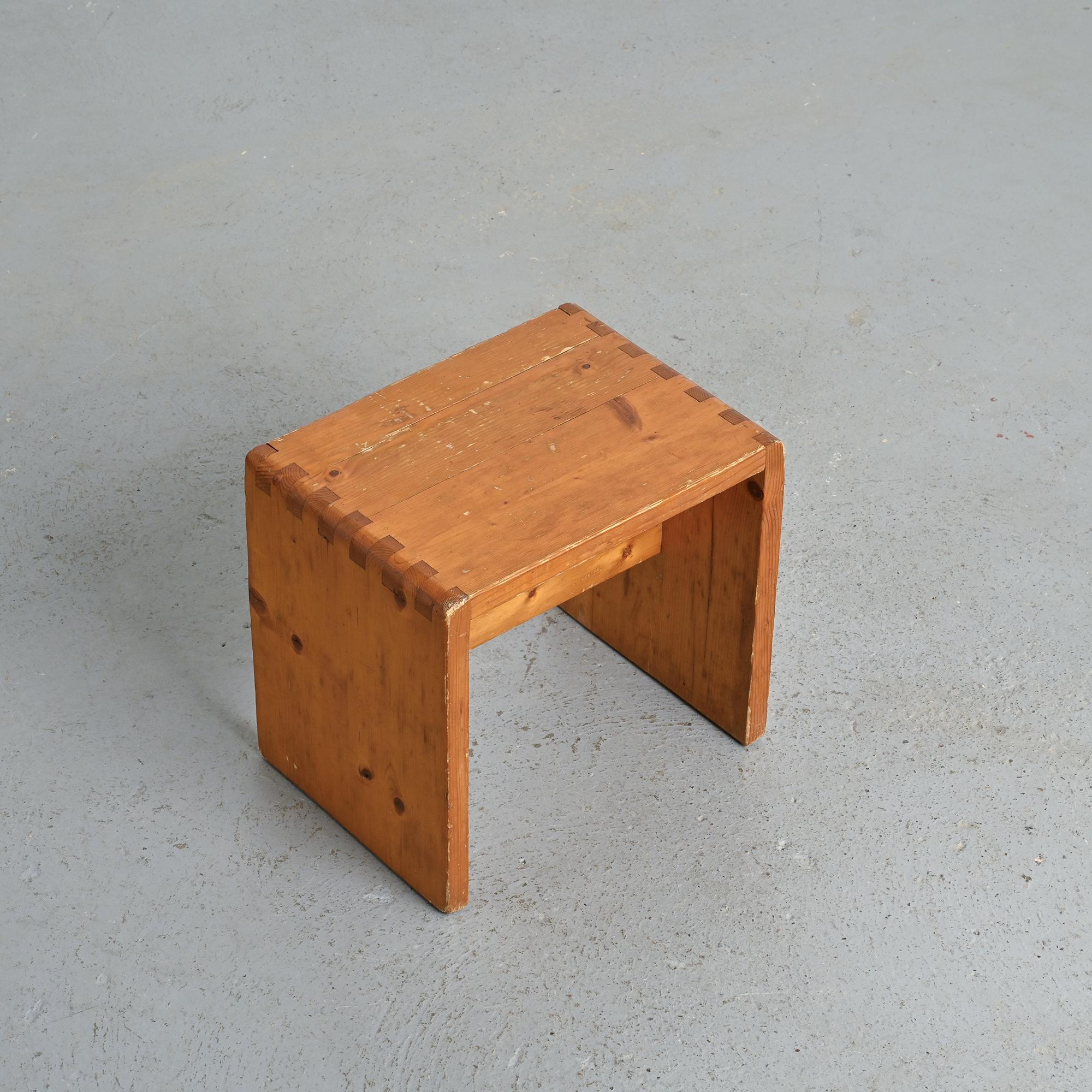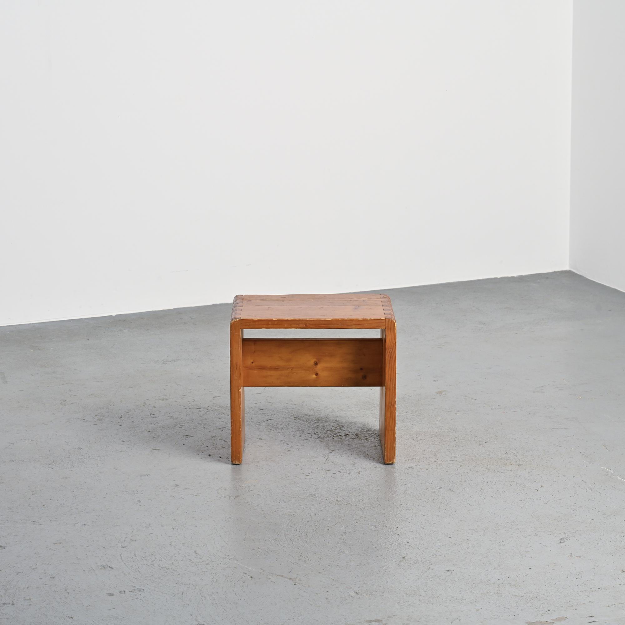 Set of four solid pine stools designed by French Alpine architect and designer Bernard Taillefer.