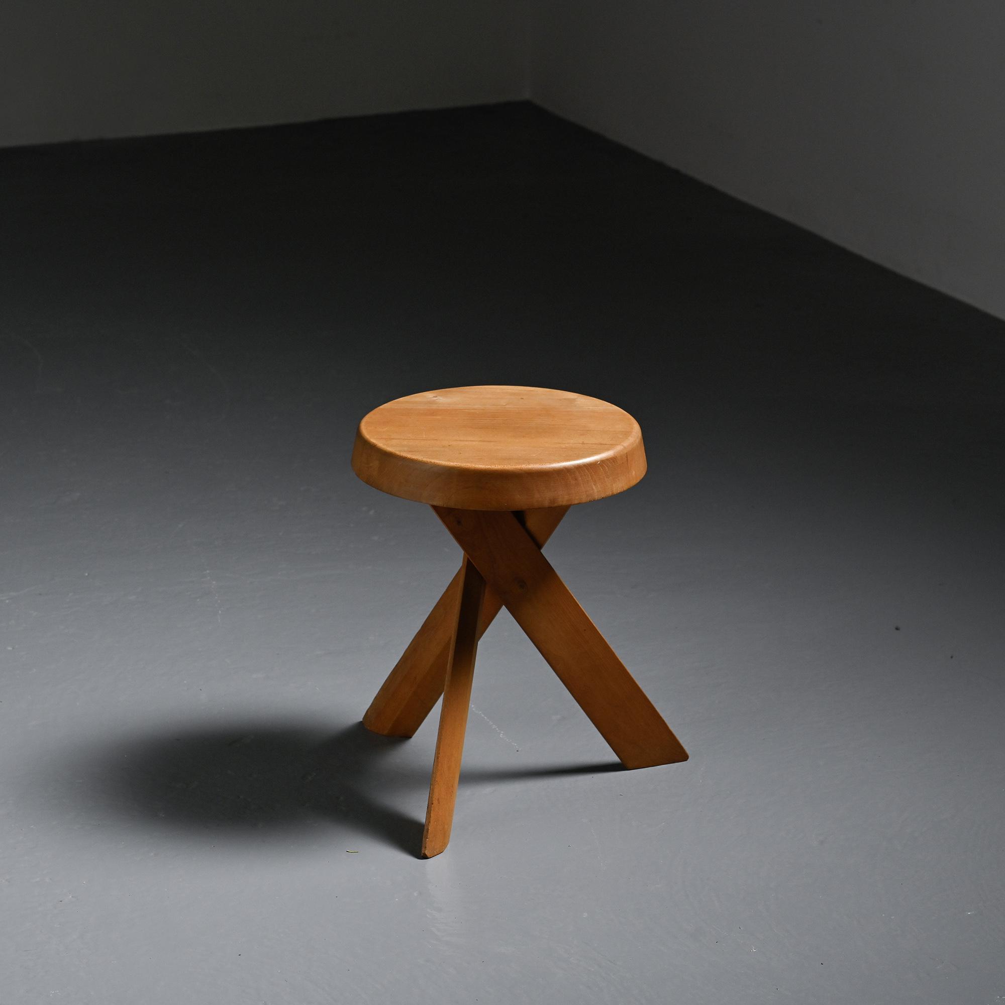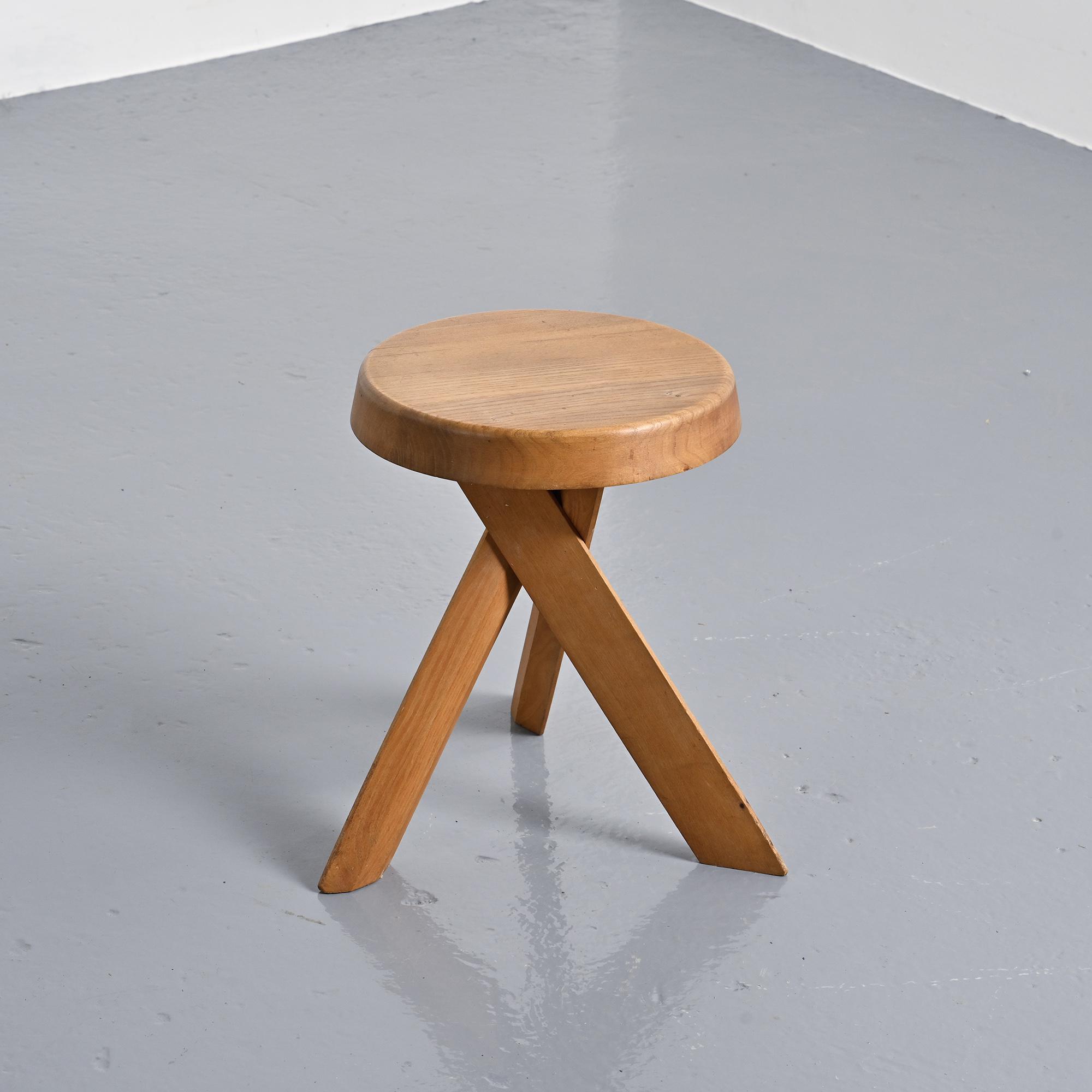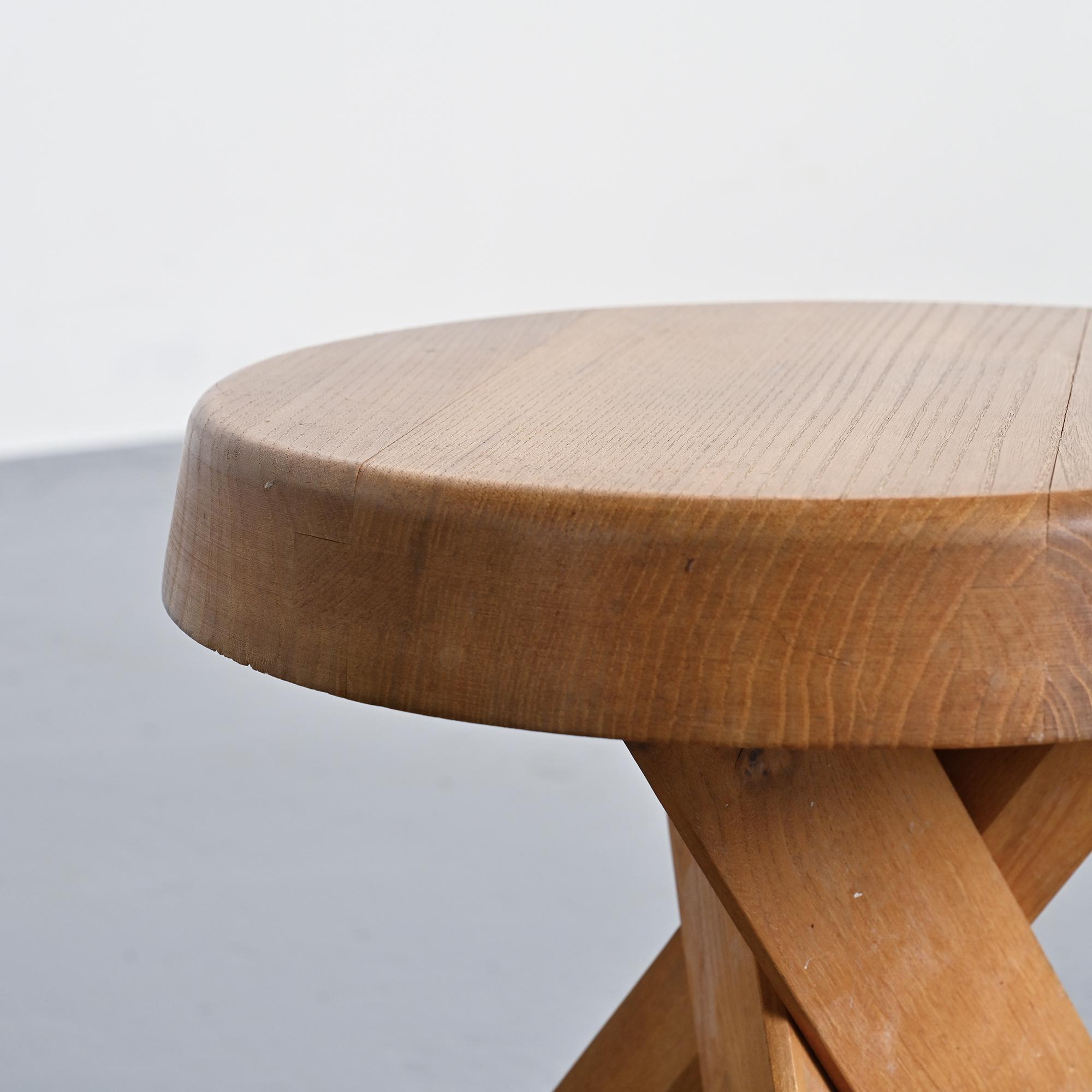 Original Solid Elm S31 Stool by Pierre Chapo, circa 1980