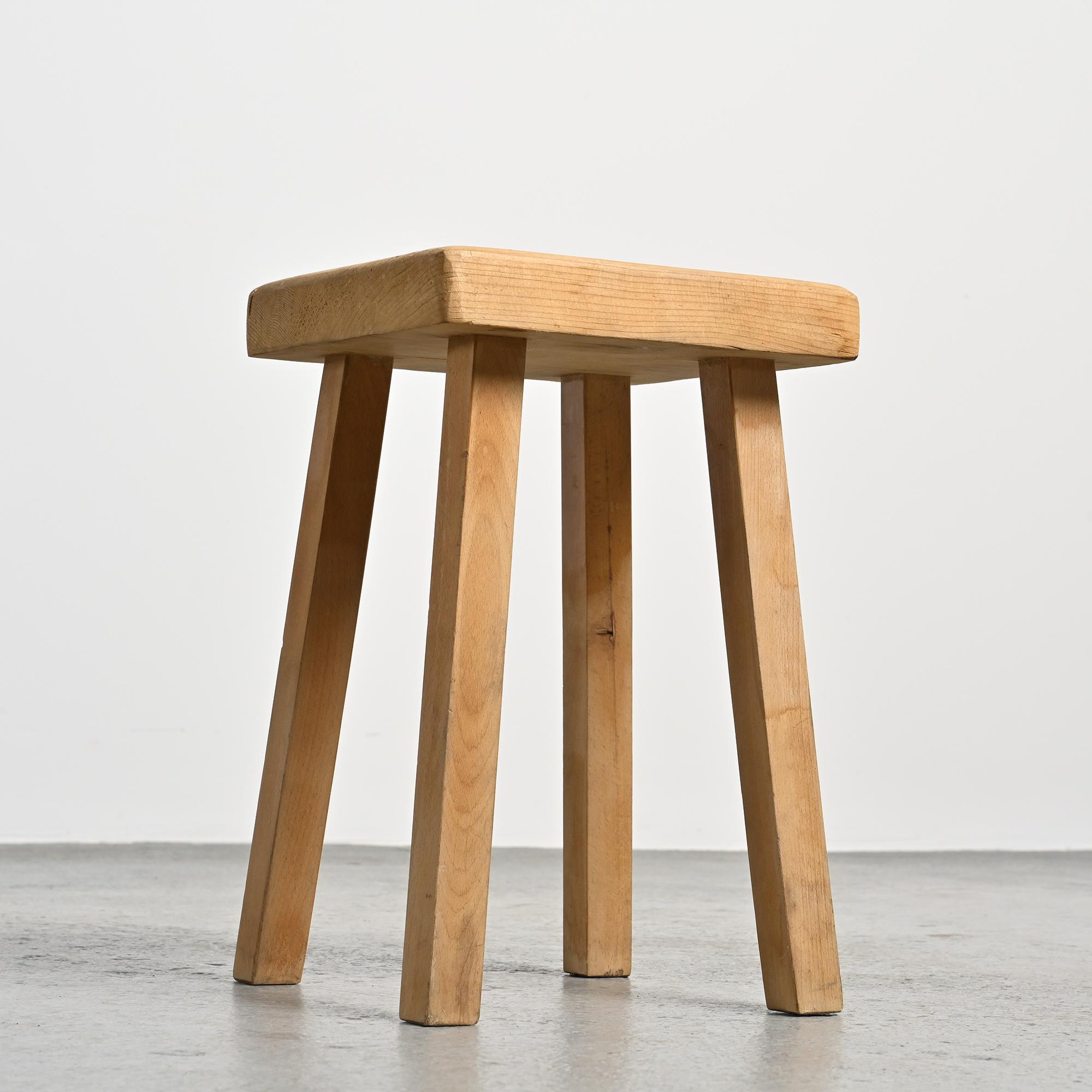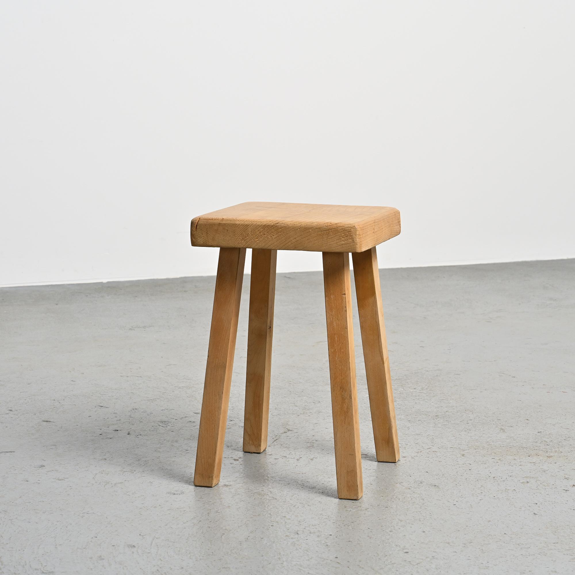 Solid pine stool with a square seat and quadripod base. It was designed for the ski resort of les Arcs, in the French Alps, station to which Charlotte Perriand dedicated 20 years of her life, passionate of mountain as she was.