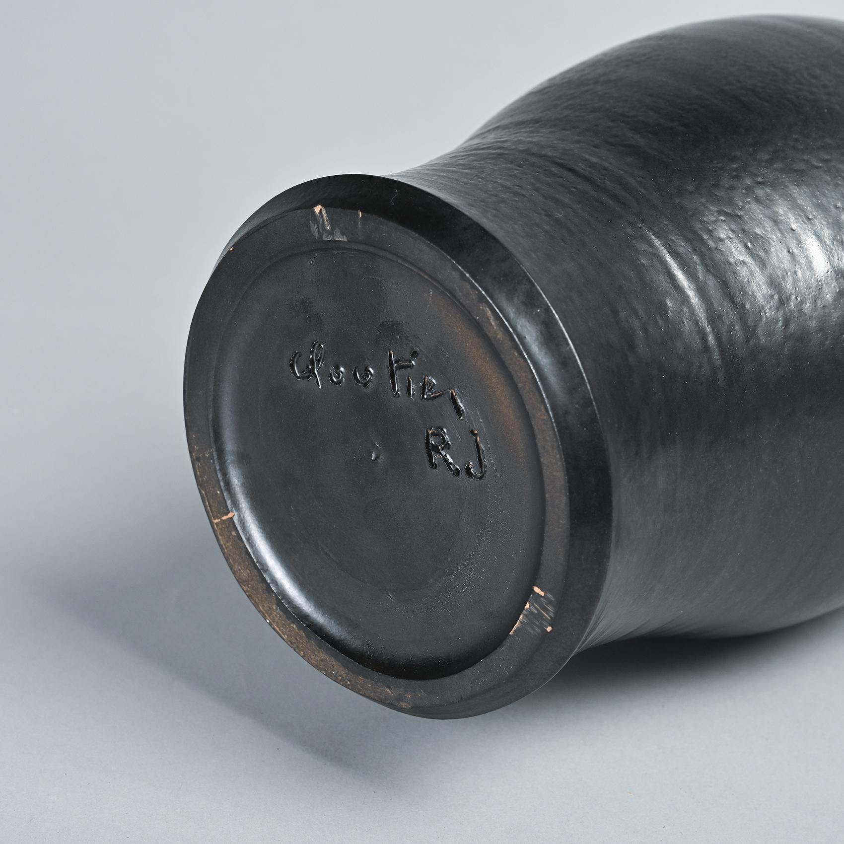 Large vase by Robert and Jean Cloutier, twin masters of French ceramics renowned for their vibrant and imaginative creations. Born in the early 20th century, the Cloutier brothers are celebrated for their innovative approach and distinctive aesthetic, combining rich textures with fantastical and dreamlike elements.