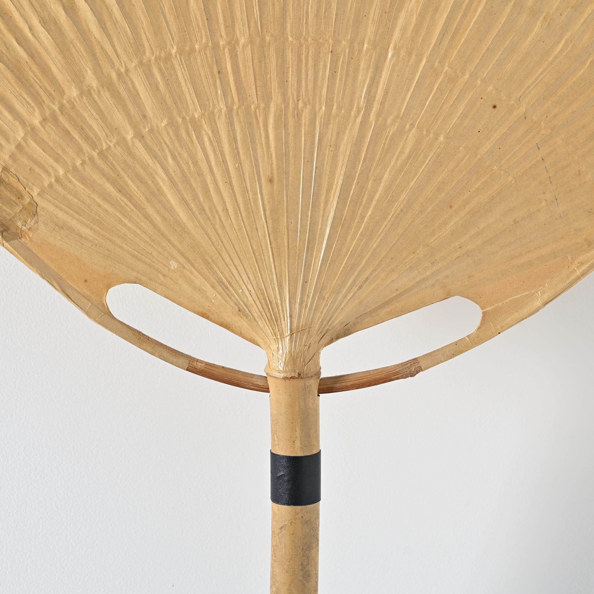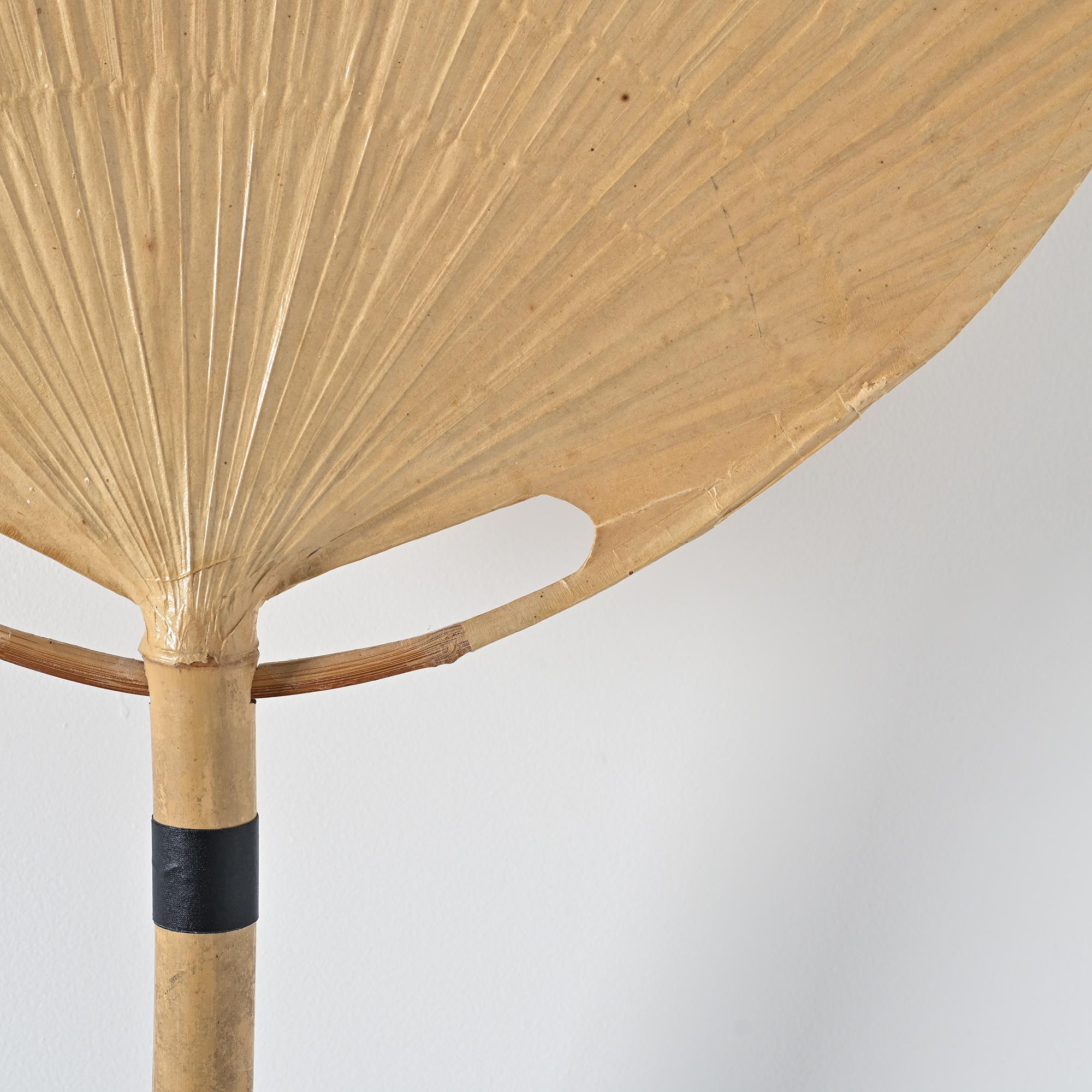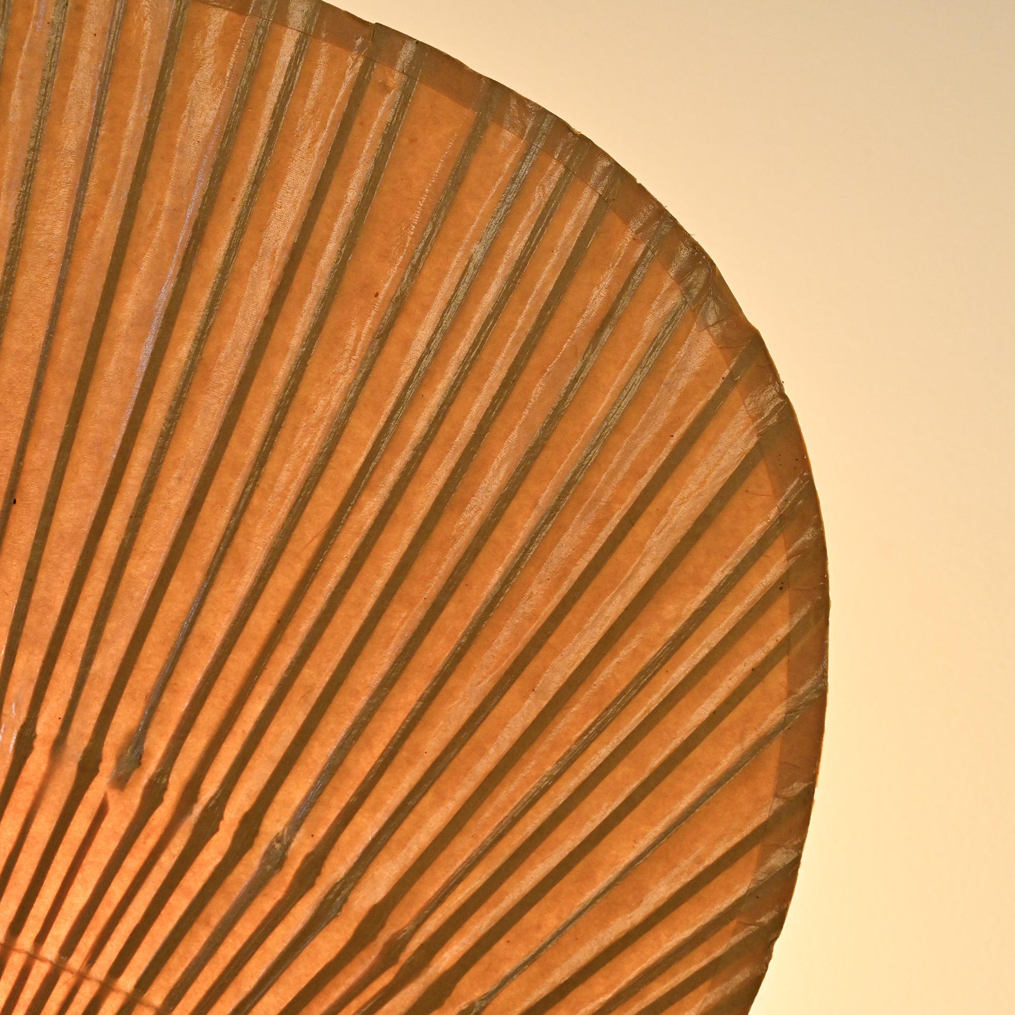 Crafted from bamboo and rice paper, this lamp plays with the natural lightness and transparency of organic materials, diffusing a soft and warm glow. Their fan-like silhouette, inspired by traditional Japanese Uchiwa fans, reflects Ingo Maurer's fascination with light poetry and material experimentation.