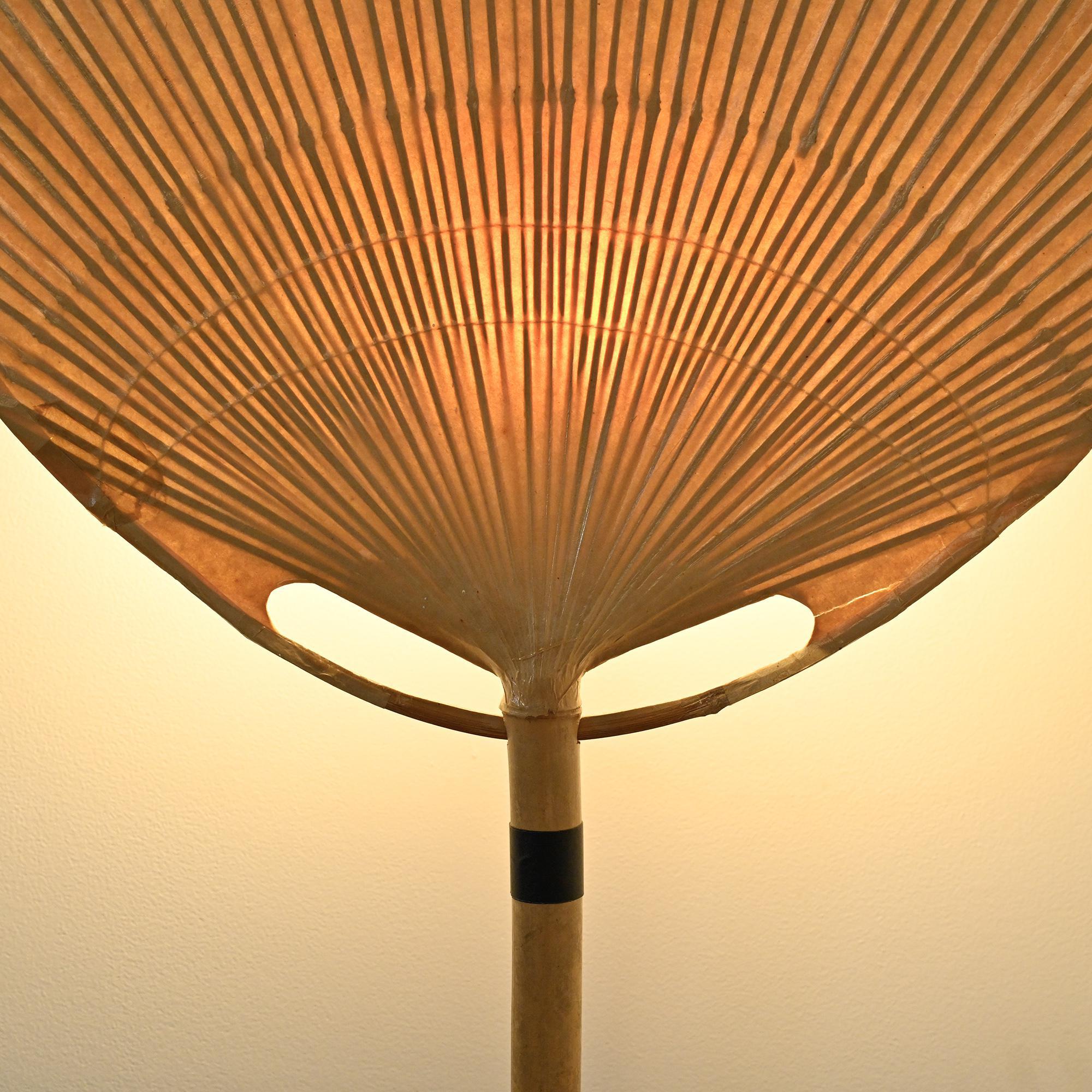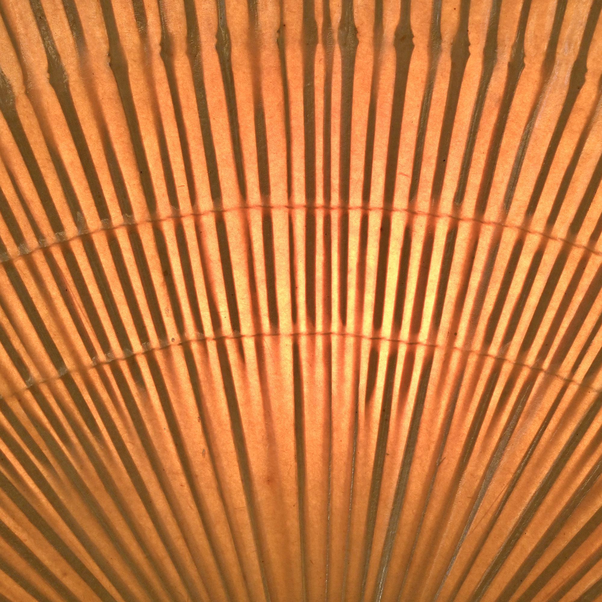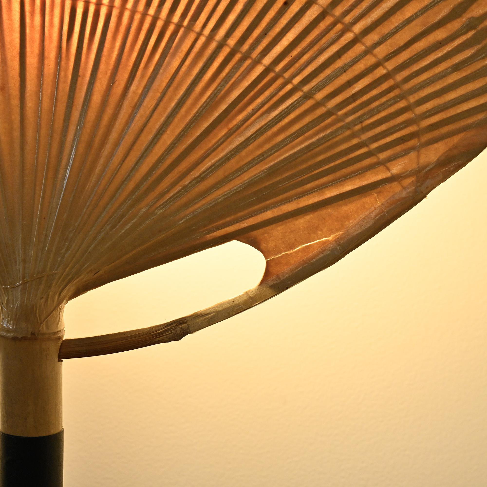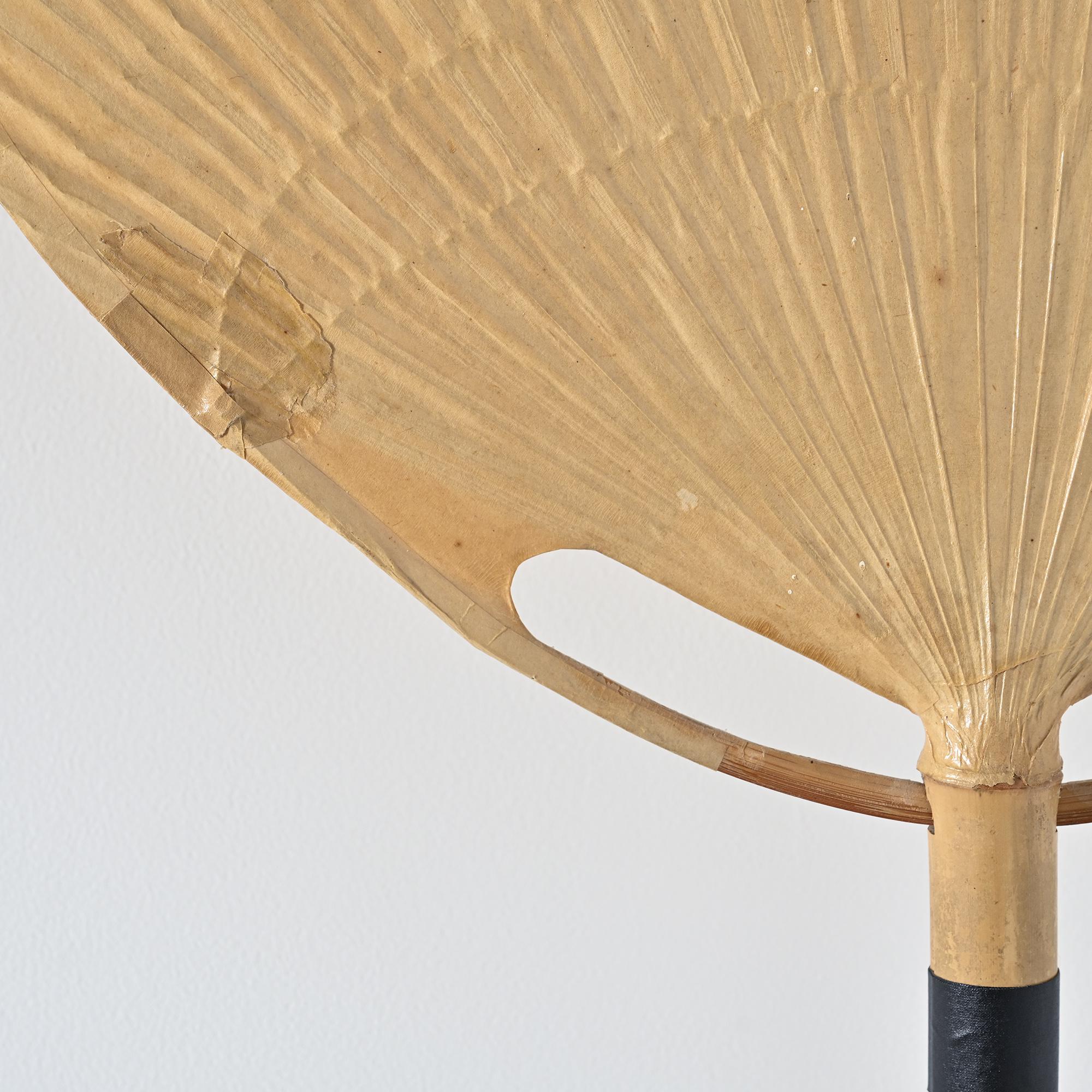 Crafted from bamboo and rice paper, this lamp plays with the natural lightness and transparency of organic materials, diffusing a soft and warm glow. Their fan-like silhouette, inspired by traditional Japanese Uchiwa fans, reflects Ingo Maurer's fascination with light poetry and material experimentation.