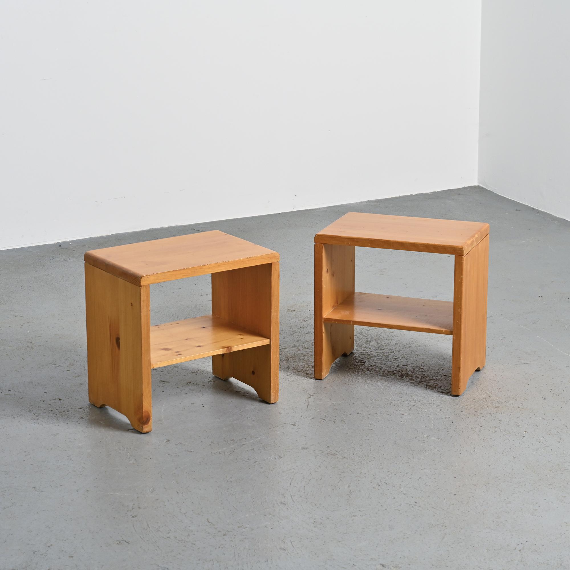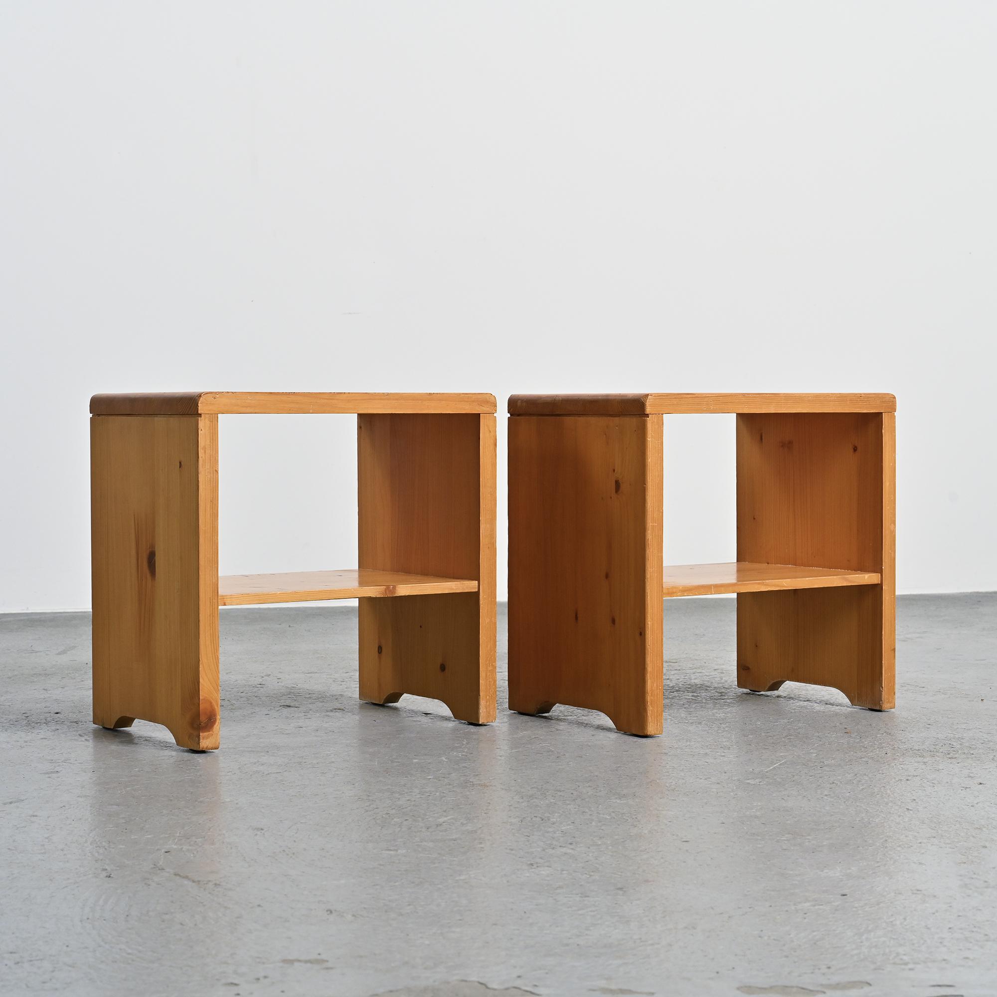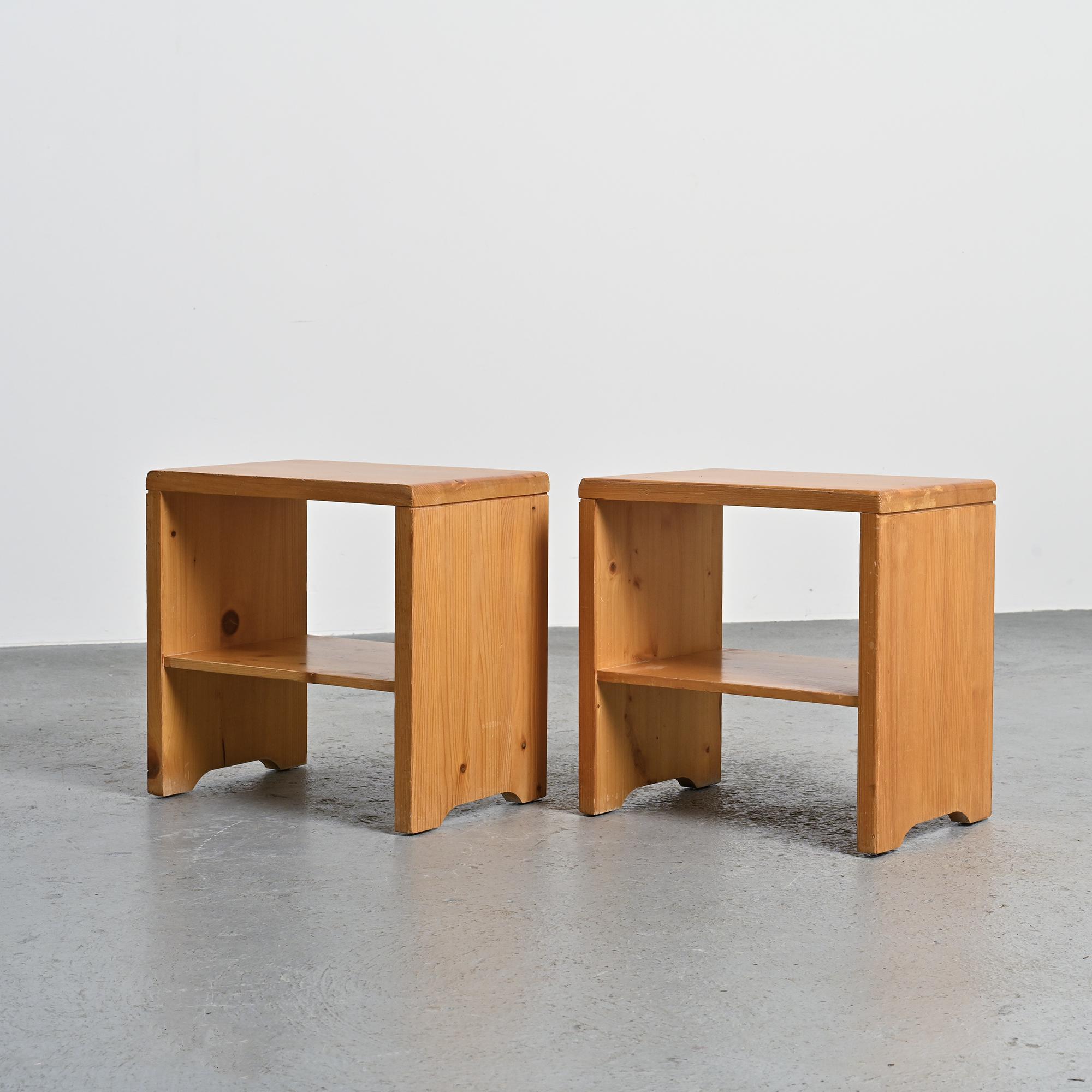 Paire of Solid Pine Nightstand from les Arcs, France 1975