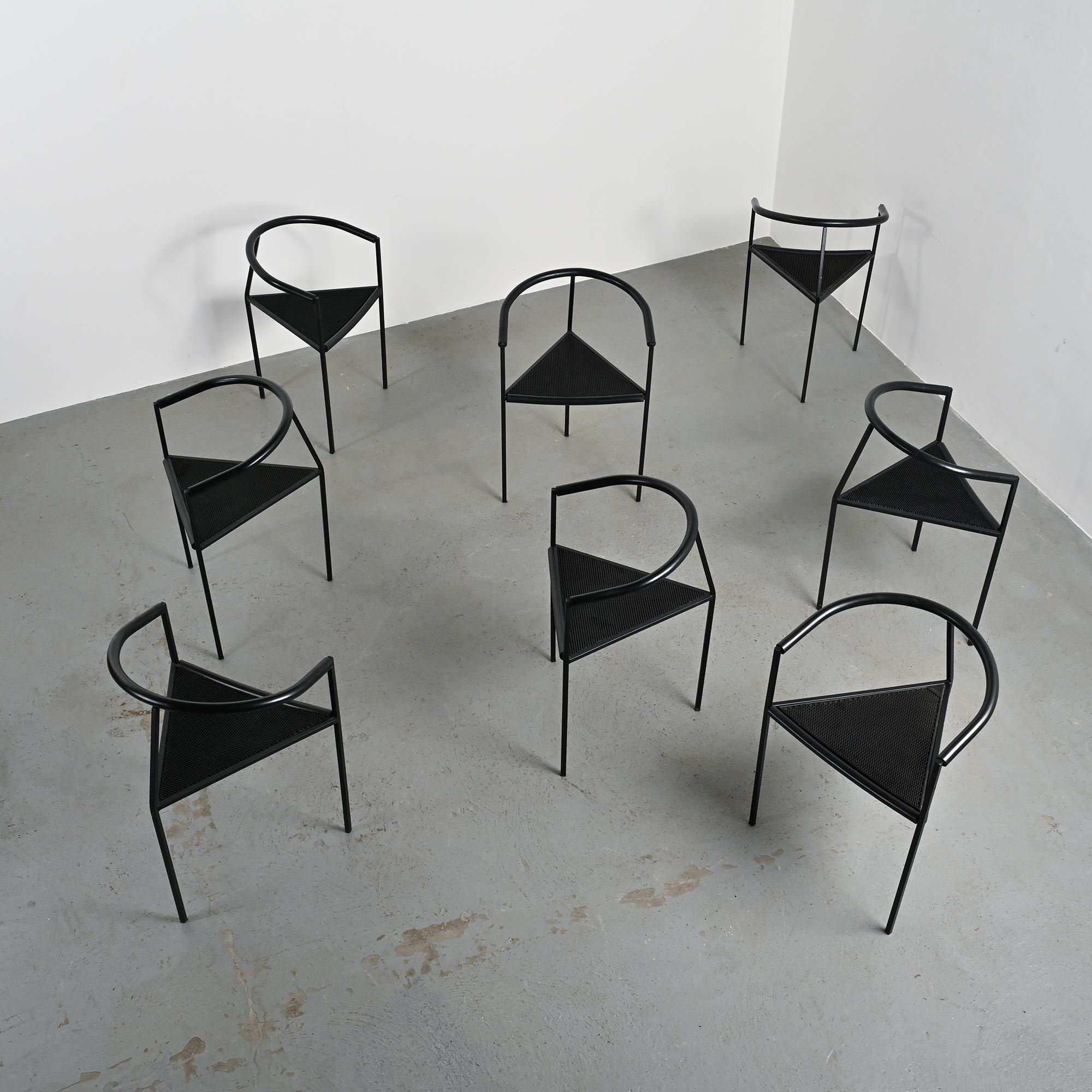 Ensemble de huit chaises modèle Millepunte, dessinées par Maurizio Peregalli et Sergio Calatroni et éditées par Zeus Noto au milieu des années 1980.