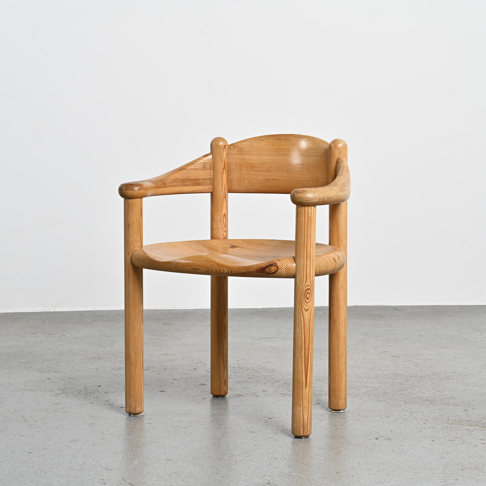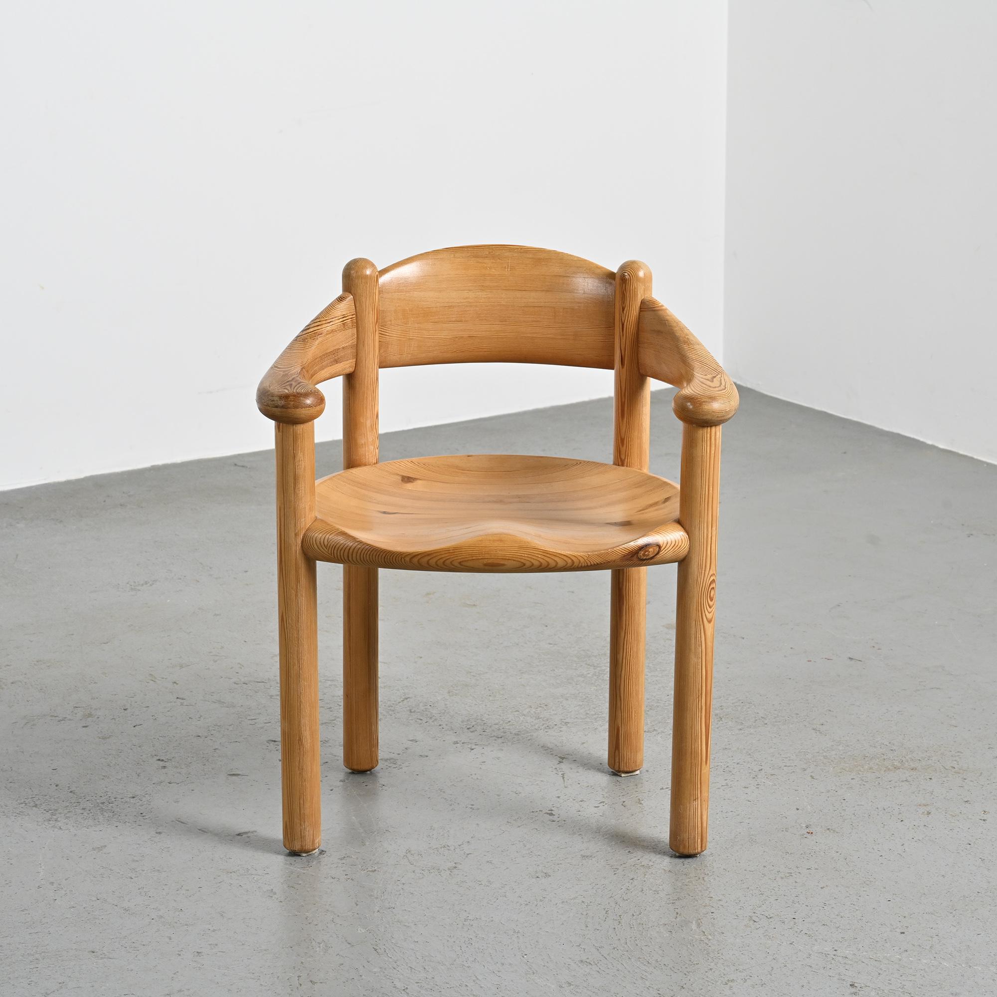 Suite de six chaises en pin massif dessinées par Rainer Daumiller au début des années 1970 au Danemark.