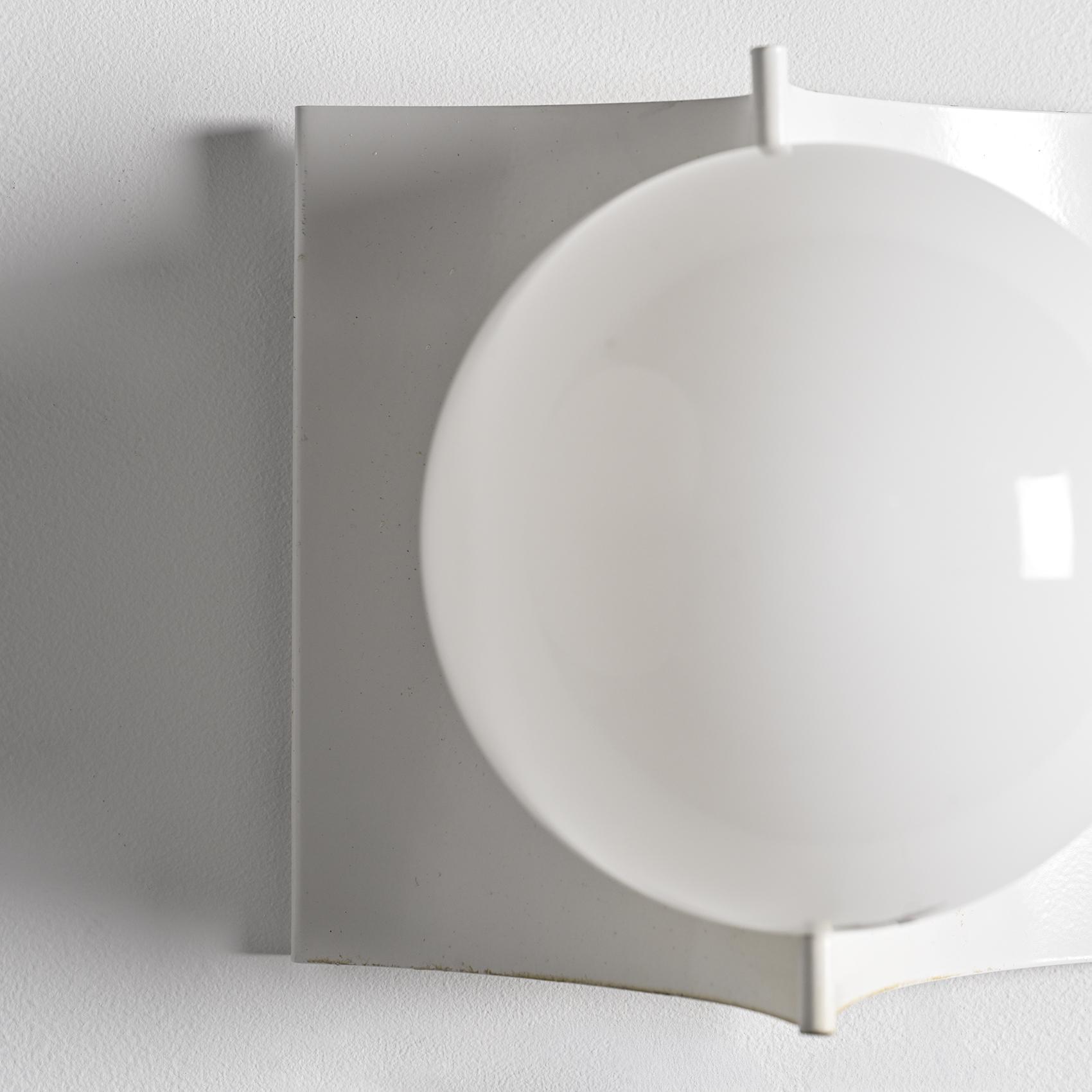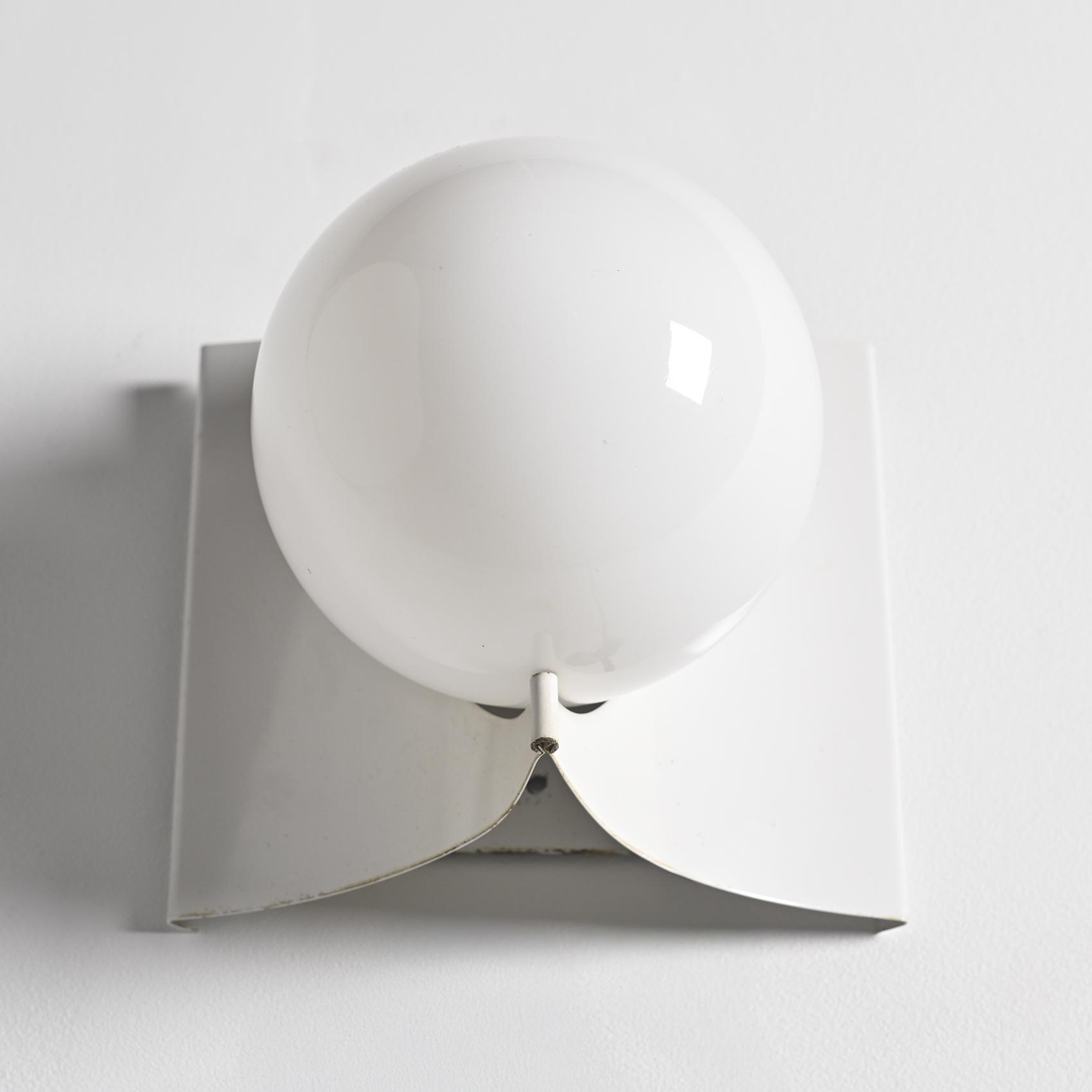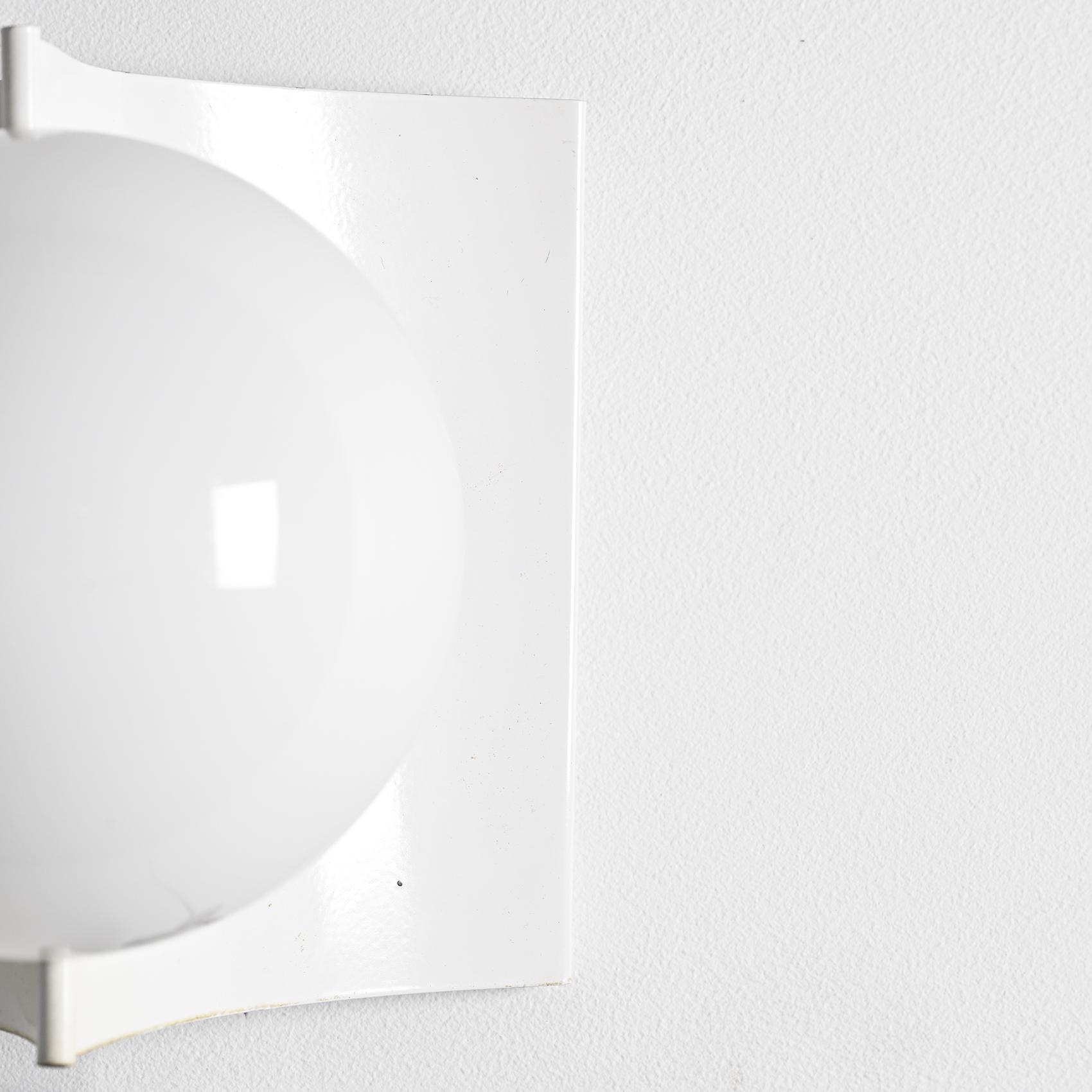 Applique murale en métal laqué blanc et globe en verre opalin, Italie ou France, circa 1970